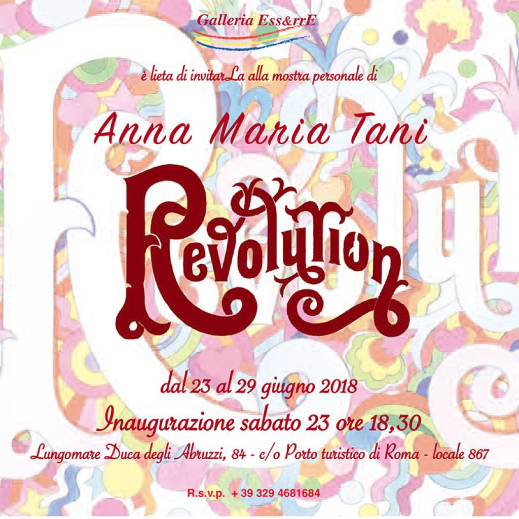Anna Maria Tani è nata nel ‘57 a Roma, dove vive e ha il suo studio, artista eclettica che ha iniziato giovanissima a dipingere, ad incidere e disegnare con maestria assoluta riuscendo a passare con facilità estrema da una tecnica all’altra ci proporrà la mostra “Revolution” al Porto di Roma con la Galleria Ess&rrE di Roberto Sparaci con cui moltissimi anni fa è iniziata una fitta collaborazione fatta di mostre personali e collettive, esposizioni fieristiche (Padova, Bari, Genova, Forlì, Bergamo, Pavia) e pubblicazioni di ogni genere.