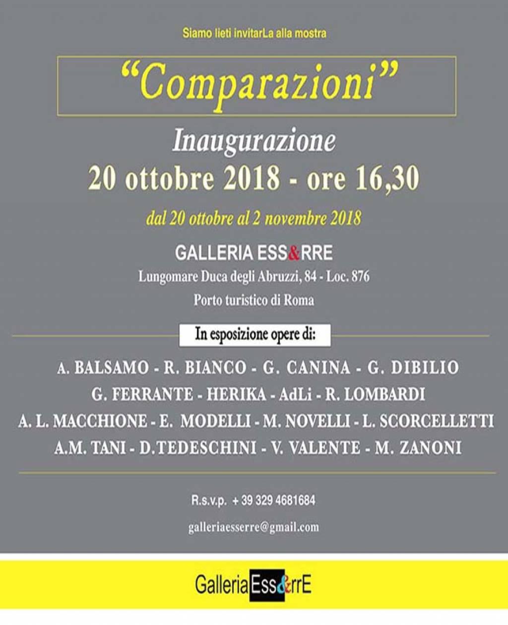 Dal 20 ottobre al 2 novembre 2018 in mostra alla Galleria Ess&rrE al Porto turistico di Roma - locale 876