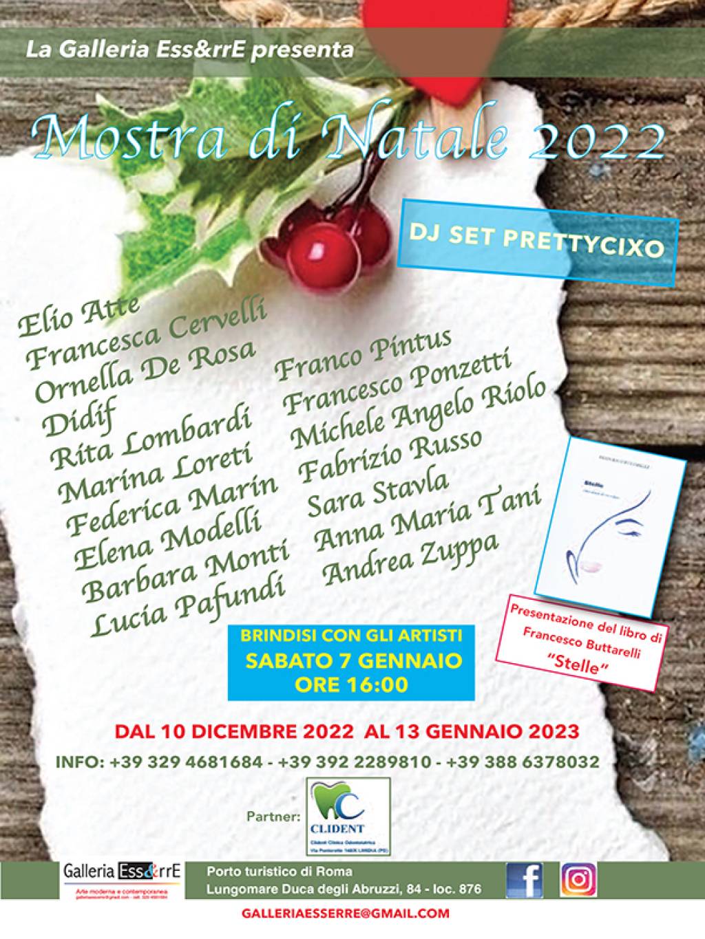 La Galleria Ess&rrE augurando a tutti uno strepitoso 2023 comunica che sabato 7 gennaio 2023 alle ore 16:00 ci sarà un brindisi di fine mostra con la presentazione del libro "Stelle" dello scrittore Francesco Buttarelli il quale vi invita a presenziare per autografare le copie a tutti i presenti
