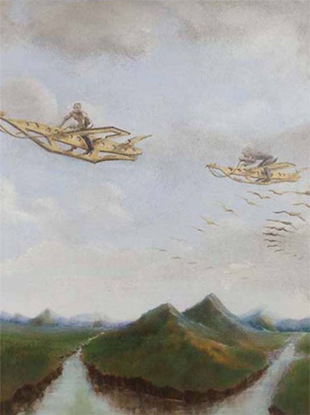 “Artista dal grande fervore figurativo surrealista moderno. Nel suo particolare percorso pittorico Michele Angelo Riolo, grazie anche ai lunghi e continui viaggi nel mondo orientale, ama immergersi in un suo universo meditativo ed emozionale per ispirarsi ed interpretare una realtà di simboli e natura, dove l’uomo si definisce in una sfera romantica di spazio e colori, come ricerca ed analisi di sempre nuove verità esistenziali. Scenografie di suggestivi paesaggi, magiche spazialità cromatiche all’interno di originali geometrie, figure dalla cui testa spuntano fluide volute di colore e pensiero.