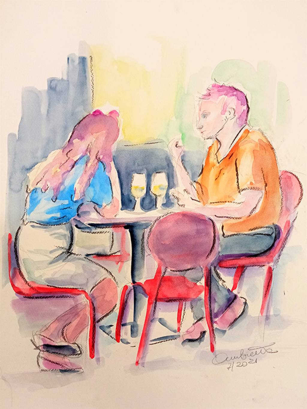 L’artista ha la peculiarità della sveltezza, quel che stupisce è vederla all’opera mentre in una ventina di minuti si diletta ad eseguire con carboncino e gessi i ritratti dei passanti che, incuriositi, posano per lei quasi fossero a Mont- martre e rimangono contenti nel vedere come Ambretta Rossi riesca, nell’arco di poco tempo, a carpire e fissare sul foglio la loro migliore espressione. Durante la sua recente mostra presso la Galleria dell’Annunziata, in via Po a Torino, sono stati diversi i personaggi immortalati nei suoi lavori. Tra questi, Ambretta ha ben pensato di omaggiare con un bel ritratto una signora ucraina che, visitando la mostra, ha raccontato le sue vicissitudini. Perché l’arte è fatta anche di incontri e scambi culturali che arricchiscono lo spirito ed ampliano gli orizzonti della conoscenza.