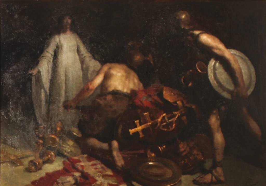 lombarda (Paolo Pagani, Agostino Santagostino), romana (Giuseppe Cesari detto il Cavalier d’Arpino, Angelo Caroselli, Pseudo Caroselli, Giusto Fiammingo, Antonio Cavallucci), toscana (Giacinto Gimignani, Livio Mehus, Alessandro Rosi, Pietro Paolini, Giovanni Domenico Lombardi). Colpisce, di Pseudo Caroselli, Giuditta con la testa di Oloferne qui esposta, per la sua espressività che rimanda all’ambiente del teatro con trucchi e costumi, inscenando episodi storici, biblici o mitologici. Tra le opere a tema mitologico, è catartico il dipinto di Agostino Santagostino (Milano, 1633 – 1699) ”Polifemo scaglia un macigno contro Aci”, un Olio su tela del 1669. L’episodio si riferisce alla tradizione ovidiana (Metamorfosi, XIII, 750-897) dell’amore del ciclope Polifemo per la nereide Galatea, promessa sposa del pastore Aci, figlio di Pan. Il dipinto raffigura la tragica fine del mito, quando Polifemo, sorpresi gli amanti abbracciati in riva al mare, si vendica uccidendo il giovane rivale con un masso, mentre la ninfa fugge. Firmato e datato 1669, il dipinto rappresenta una delle prove più antiche del pittore milanese Agostino Santagostino, conosciuto per dipinti di tema sacro distribuiti nelle chiese della sua città.
